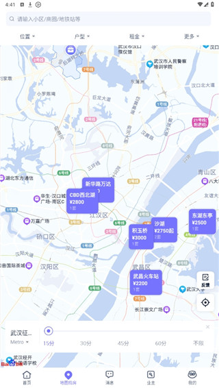 相寓app官方版提供了地图找房服务,你可以在地图上查看到自己附近的房源信息,并且还可以了解周边的设施情况。此外,软件还提供了通勤计算服务,选择好需要租的房屋后,通过通勤计算来输入自己的上班位置,这样系统就会帮你计算出通勤的时间了,非常的贴心。有租房需求的朋友快来下载软件使用吧。