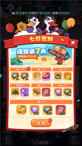2、游戏提供了七天签到福利,每天钱都可以领取资源,第七天签到领取的最丰富
