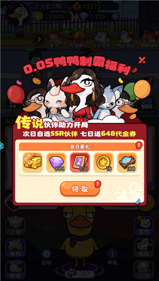 1、一进入到游戏中就可以得到888钻石、黄金宝箱等福利了