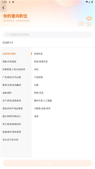 1、初次注册的用户,需要填写问题,这些问题会帮助你筛选岗位。