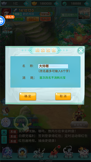 2、随后,在游戏中为自己起一个威武霸气的名字