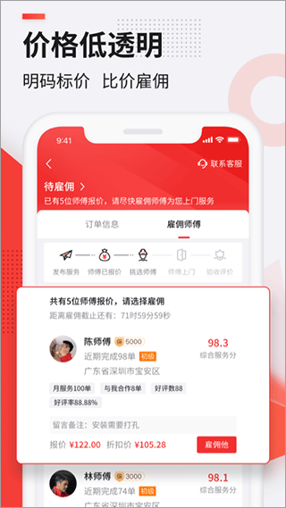 3、订单快速匹配:借助强大的数据处理能力,实现98%的订单秒配,确保师傅在12小时内预约服务。