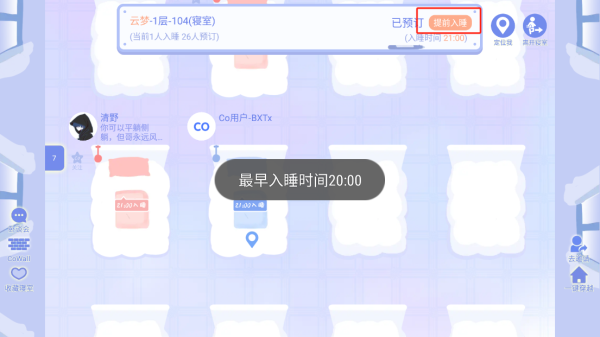 1、在首页选择睡觉区域。