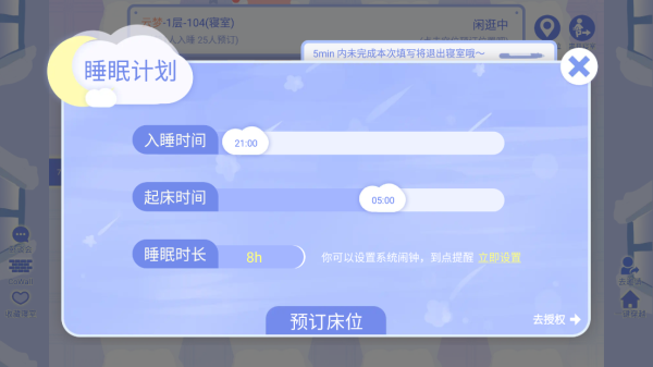 4、预定空床位,填写睡眠计划