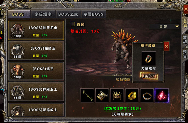 6、此外,游戏内还有丰富的BOSS进行挑战,击败它们可以获得高级装备资源,快速提升战力。