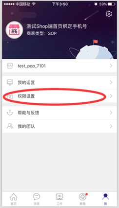1、登录后,导航至“我-权限管理”。 注意:仅主账号拥有设置权限,主账号默认具备全部操作权限。
