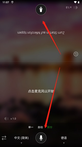点击页面中的麦克风图标后,说话即可自动翻译。点击右侧两个麦克风图标,便可进入实时交流模式,实现两种不同语言间的即时沟通。