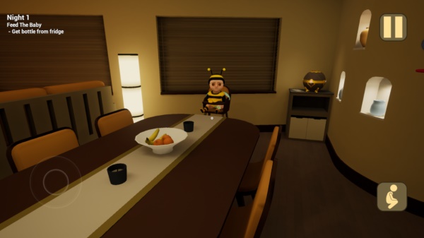 1、玩家需要负责一个看似不那么可爱的小宝宝,从喂奶、换尿布到哄睡,每一个细节都不可忽视。2、对于初次进入游戏的玩家,左手控制移动方向,右手执行互动操作;