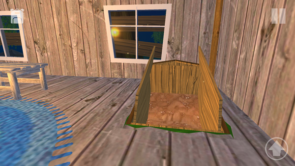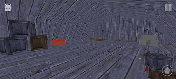 7、探索房间,注意到楼顶有块碎木板,可以利用身后的木箱子爬上去。
