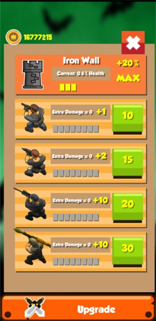 3、随着游戏进程,敌人增多,时刻准备给你的士兵升级;