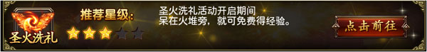 皇城中每天会定时点燃祈祷的圣火,在此期间玩家只需要在圣火旁即可获得大量的经验,还可以通过提高“洗礼值”来提高每次获得的经验。