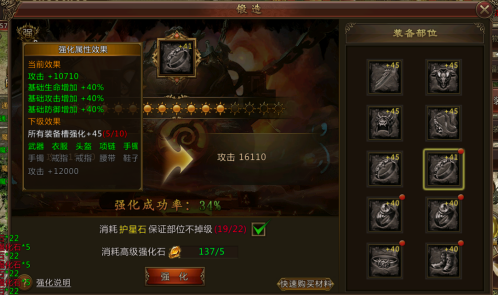 装备强化能给玩家的装备带来很高的属性加成。在君临传奇中,装备强化的对象是装备部位,当更换装备的时候,强化属性不会消失。也就是说,如果之后获得了更强力的装备,强化属性也依然会保留。