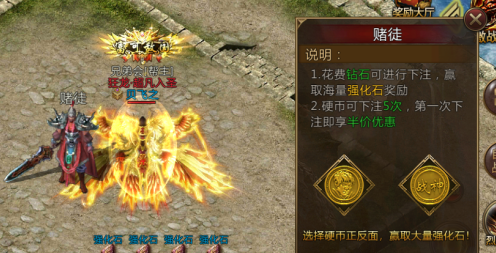 强化石可以通过盟重城传送门右边的NPC这里接受强化试炼,每天可以稳定获得强化石。