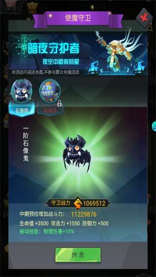 2、激活一阶石像鬼,即可让它陪伴你出战。