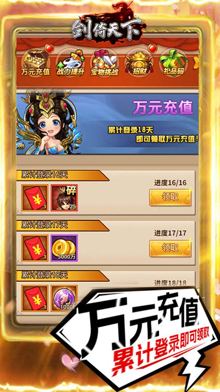 剑倚天下手游是一款唯美浪漫的修仙题材放置手游,该游戏为玩家们提供了海量的修仙玩法,无论是开宗立派,闯荡上古绝地还是渡劫飞升,收服异兽等都能够实现,你也将在一次次挑战天道的路途之上不断提升自我。开局之初,你将跟随系统的指引去完成主线任务,逐步了解这个修仙大世界背后的真相,同时也不断熟悉每个系统的玩法。与传统修仙手游不同的是该剑倚天下游戏没有固定的数值对比,也没有一成不变的活动让你每天上线做,你只需要开启一键打怪方式即可收割所有资源,最大程度解放你的双手,简直爽歪歪。还在等什么,对此感兴趣的小伙伴快来下载体验吧!