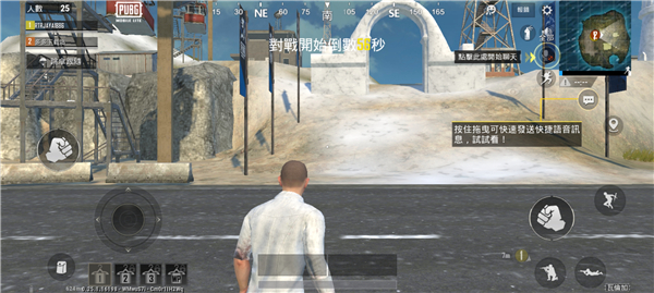 12、右上角小地图帮助玩家定位,底部倒计时显示安全区缩小时间,玩家需查看地图并移动至安全区;
