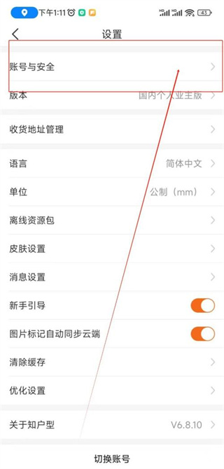 2、然后在设置的页面中有账号与安全、版本、收货地址管理等功能,在这里点击【账号与安全】;