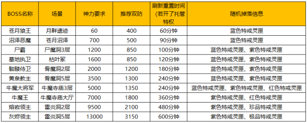 这里整理了一份关于苍月岛刷特戒各个BOSS场景的信息: