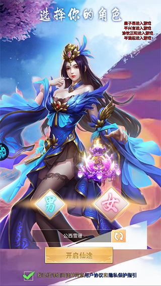 1、下载并启动游戏后,首先进行角色选择。