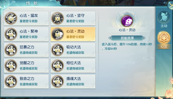 被动技能自动生效,通过名望商城购买或完成星君密令任务获得。