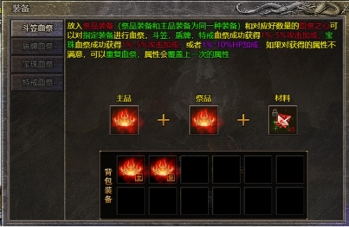 利用血祭系统,通过祭品和血祭之心,为装备增加攻击或HP加成,提升战斗力。