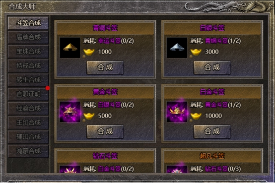 1、【装备合成】玩家可通过合成大师,将低等级的装备合成为更高级的版本,提升装备的属性和特效。
