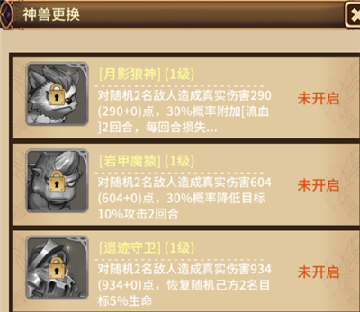 4、神兽上阵提供特殊效果,根据队伍配置选择合适的神兽可以显著提高战斗效率,如增加真伤输出或降低敌方命中率。
