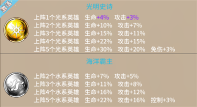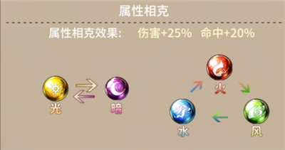 2、英雄之间存在属性克制关系,如水克火,火克风,风克水,光与暗互相克制,利用这一点可以提高战斗胜率。