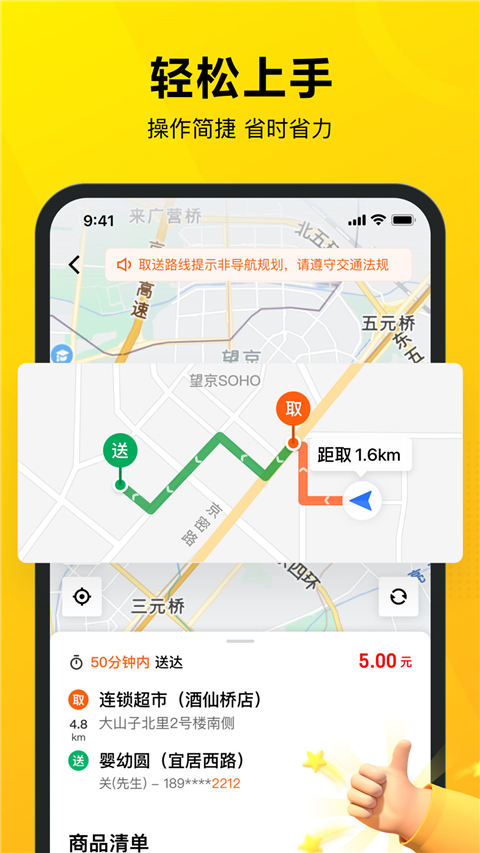 1、订单量巨大——实时更新附近的订单。2、使用便捷——四步操作轻松完成订单。