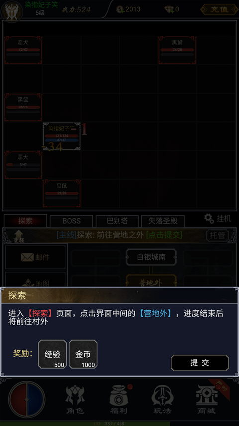 2、新手玩家应跟随主线任务,熟悉游戏流程;