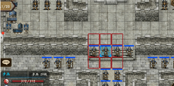 五回合时荀彧成功到达敌方左侧城墙下,一个焰冲秒掉左侧一排弓兵,假如秒不掉,配合徐庶技能慢慢清理就是,注意荀彧回蓝就好,此时我方典韦及刘备已推进至敌方中路剩余三排杂兵处,我方回合结束,对方陈宫及毒策士出现!