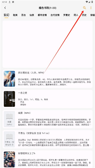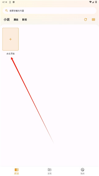 2、进入添加界面后,利用右上角的搜索功能,查找所需小说。