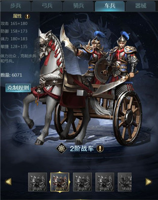 (4)车兵:具有强大防御和攻击能力的全能型兵种。