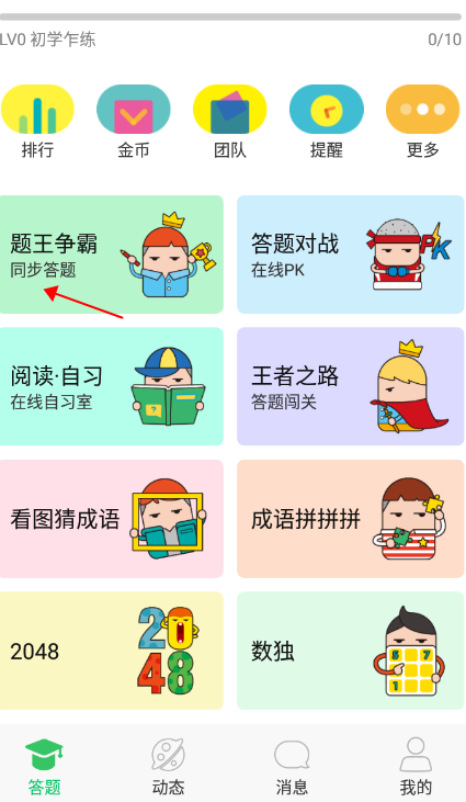启动app,选择同步答题开始挑战;