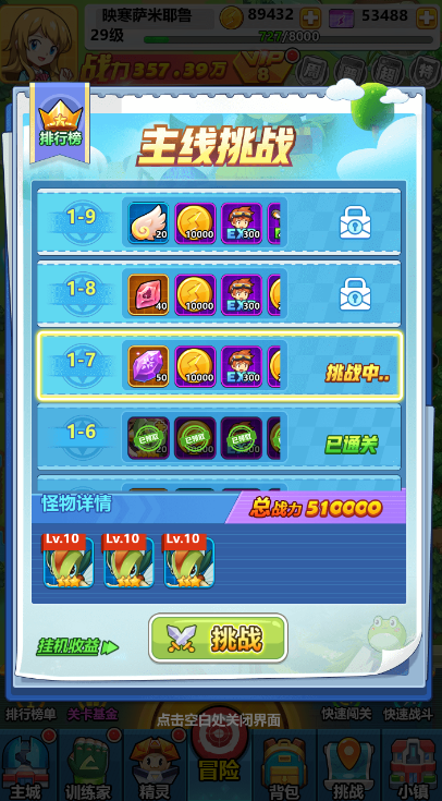每个精灵都有独特的技能和属性,正确使用它们可以帮你在战斗中获得胜利,从而获取更多金币。