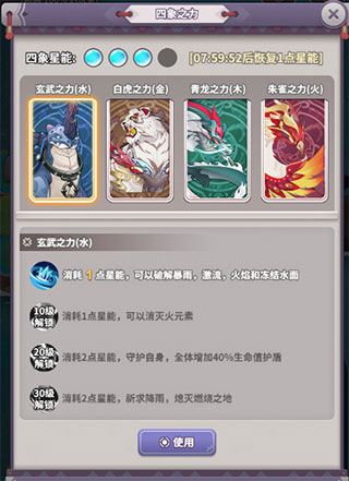 在四象物语手游官方版中,战斗不再是简单的回合制对抗,而是融入了星能消除技的趣味机制,玩家需要奇妙选择四象星辰,释放对应技能,普通攻击与绝技技能的搭配,让每场战斗都充满变数,星能消除技的掌握,更是能打出华丽连招,实现战斗策略的极致运用,享受策略与操作的双重乐趣。