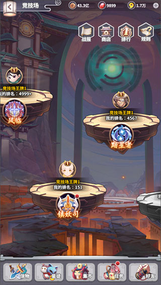 4、九大竞技场,为玩家提供了多样的竞技场景,根据不同的养成策略,玩家可以选择合适的竞技场以获得更好的奖励。