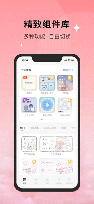 1、提供多样实用小组件,提升桌面实用性和趣味性;2、专业设计师精心搭配,一键重塑桌面,带来全新视觉享受;