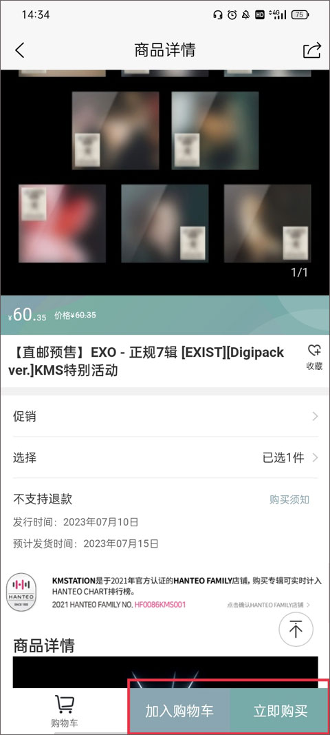 3、在产品详情页选择加入购物车或直接购买,app支持支付宝支付,完成支付后即购买成功。