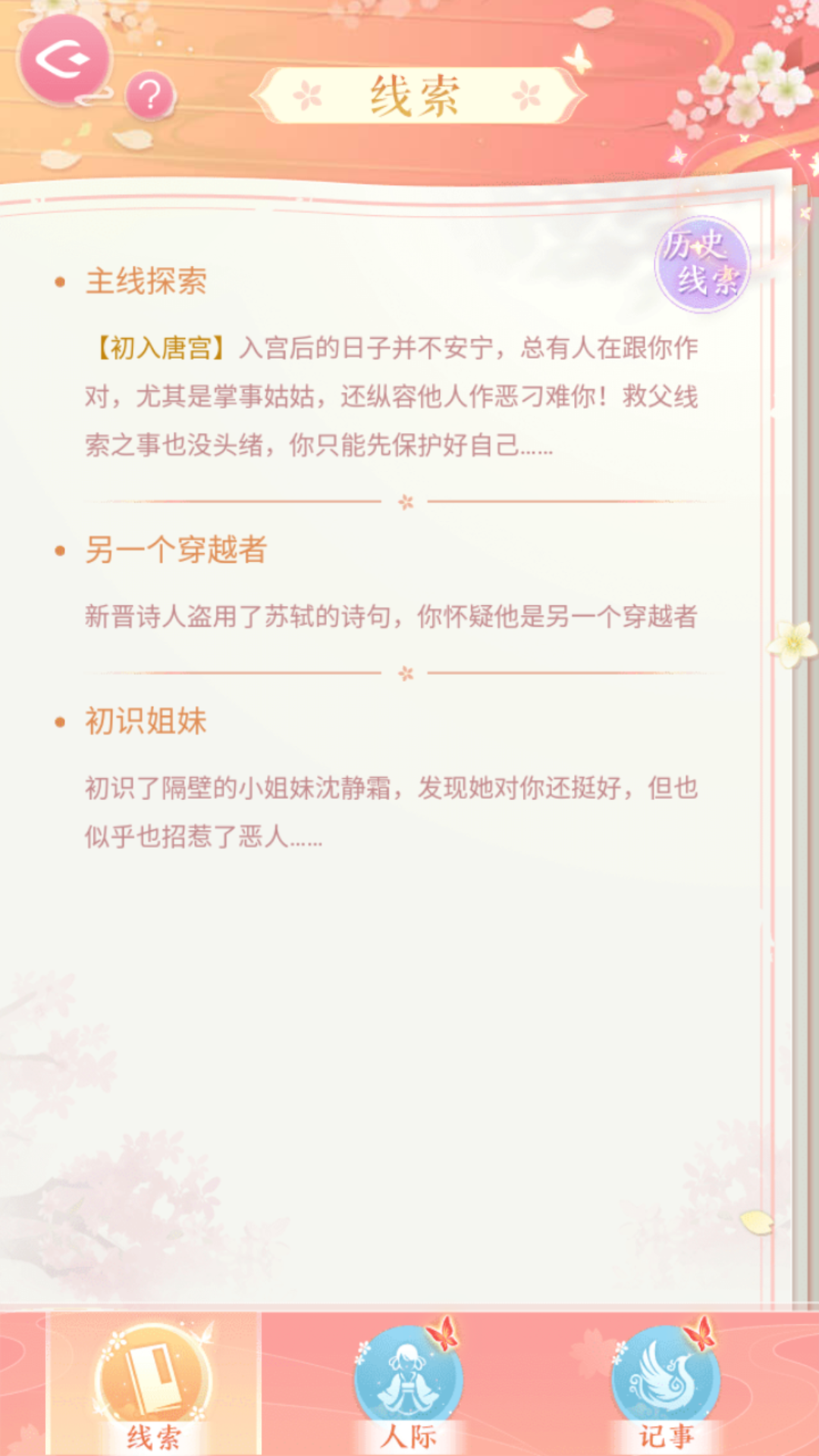 3、这里可以查看到剧情中的所有线索,点击历史线索可以查看更多。