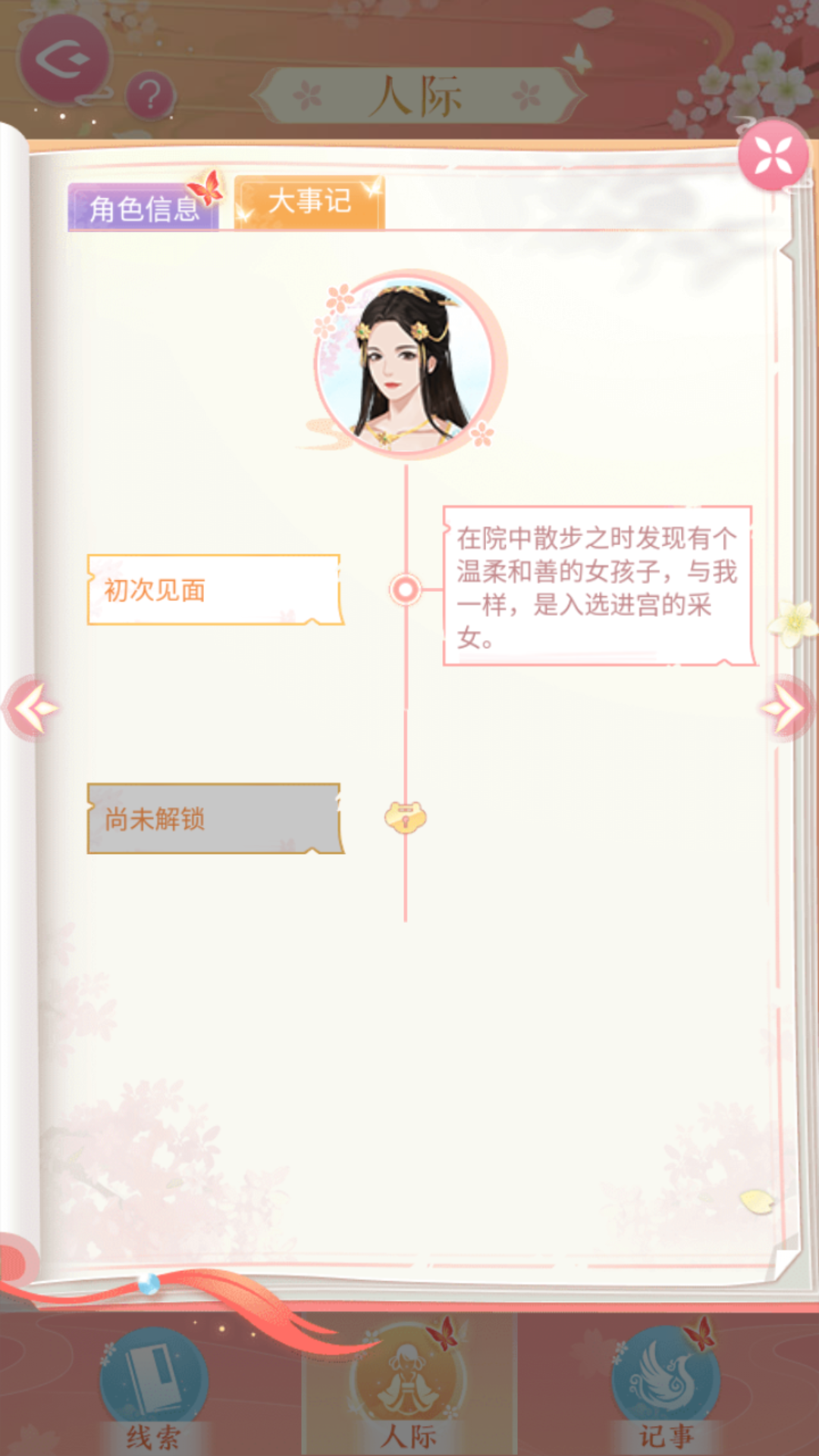5、切换至大事记可以查看你与这个角色的互动历史。