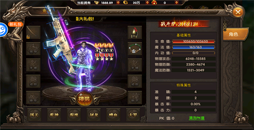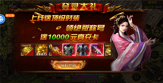 2、游戏初始即赠送顶级时装、绝版称号、万元真充卡,及vip15等级。