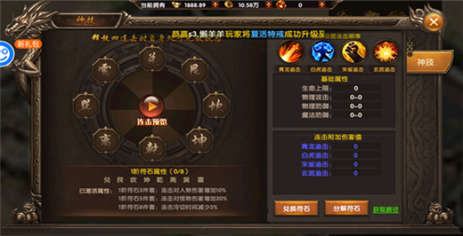 3、游戏中,查看已学习的“神技”和“技能”可点击技能按钮。