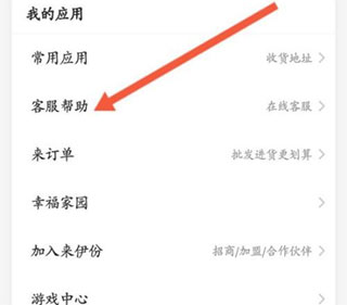 2、在“我的”页面里,找到并点击“客服帮助”。