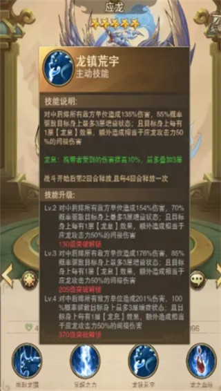 例如应龙的[龙镇荒宇]给敌方附加龙息buff,而队友对受到【龙息】单位提升伤害增加10%。还有更多厉害的组合等你去发掘~