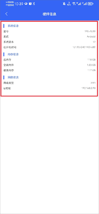 1、打开app,从界面点击进入硬件信息查询部分