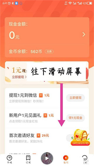 1、打开番茄畅听,在底部导航选项中,点击领现金。