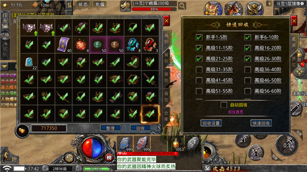 2、通过自动挂机,玩家可轻松获得各种装备,这些装备还可以通过一键回收功能直接转化为元宝等珍贵资源;