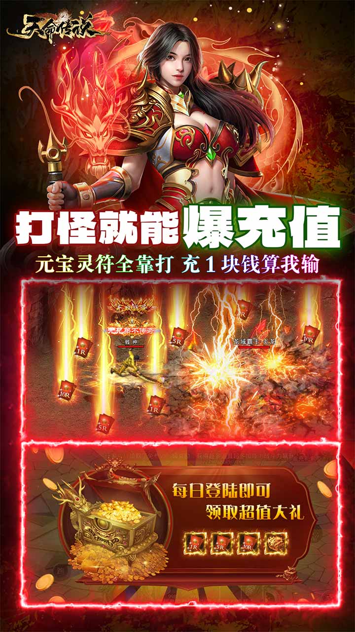 更棒的是,天命传说里还有特别福利版本,参加各种活动就有机会赢现金红包。做做简单任务或者升级,也能得到好多资源。而且,游戏还能挂机,让你轻轻松松就能得到帅气装备和珍贵的武功秘籍。如果你对这款游戏感兴趣,赶快下载,开始你的传奇冒险之旅吧!