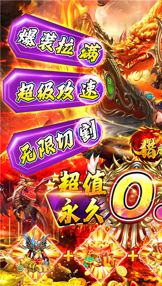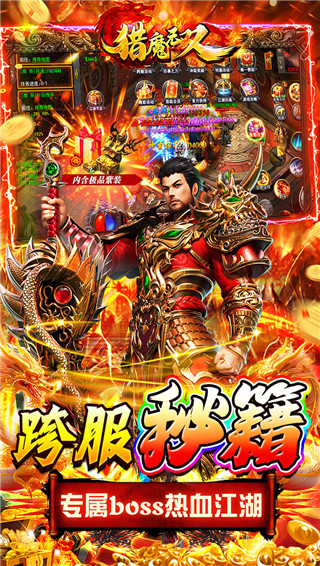 3、装备极品,历史级BOSS等待挑战,超高的装备爆率,神兵利器、远古神兽以及炫酷坐骑都在等待您的探索;
